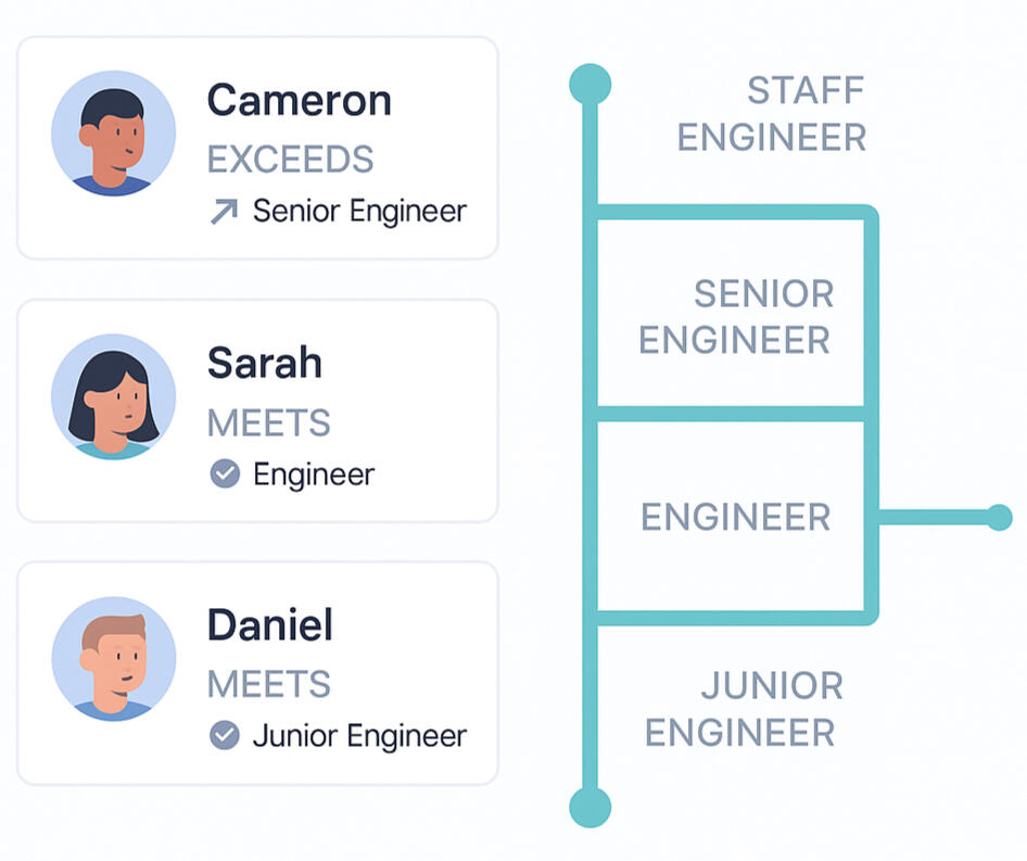 Map performance to your career ladder, spot growth areas, and stay consistent.